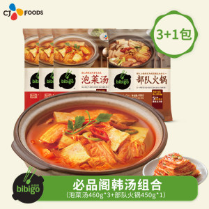 必品阁经典韩式汤底系列,韩国传统工艺熬制,还原韩餐美味,精心调汤,食材随心配,汤酱分离,美味又省心,暖心又暖胃。包含:韩式部队火锅*1+泡菜汤*3