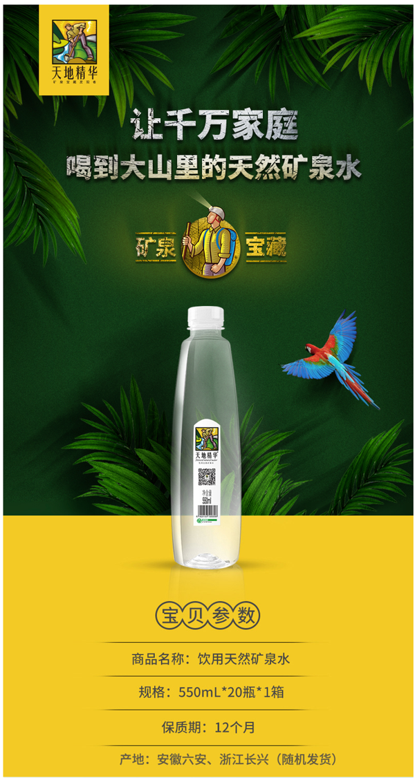 天猫天地精华旗舰店0元,可领5元优惠券,实付30.9元到手,规格550ml*20瓶。