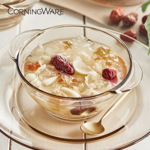 这款美国的康宁snapware耐高温透明玻璃碗碟,采用康宁PYREX耐热玻璃材质,食品级材质,材质安全无铅,符合美国FDA认证,可在微波炉和烤箱中使用。