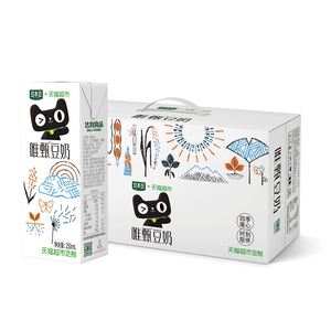 这款豆本豆唯甄豆奶是天猫超市联合的定制款,严选非转基因大豆味原料,再添加水和白砂糖,除此之外再无其他,不添加食用香精和防腐剂,还原醇香本味,每100ml含植物蛋白2.5g,无菌灌装。