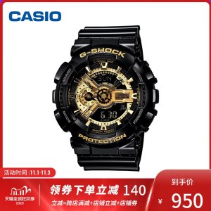 =950元 到手价,这款卡西欧 GA-110GB-1A运动手表,日本原产,属于旗下最知名的G SHOCK系列,黑色和金色的组合,非常非常帅气。