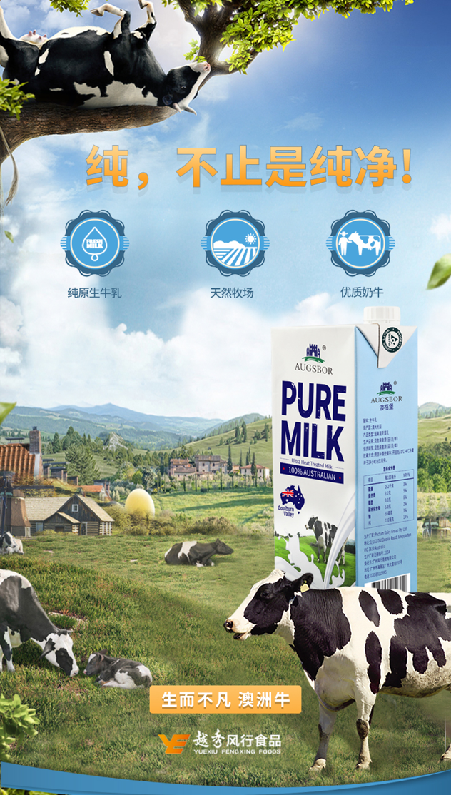 “澳格堡”隶属广州风行商贸有限公司,注册资金10000万元,致力于国际农牧业交流,与澳大利亚自由食品集团合作将澳洲最纯净自然的原生纯奶带回中国。