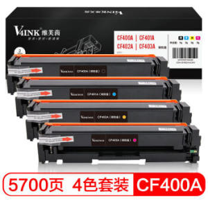 V4INK维芙茵 CF400A硒鼓 201A墨盒粉盒四色套装,适用于惠普HP LaserJet Pro MFP M277dw M277n M252n M252dw M274n打印机。这款硒鼓的灌粉量为黑色35g/支,彩色30g/支,黑白打印量约为1500张, 彩色大印量约为1400张。