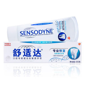葛兰素史克旗下品牌SENSODYNE舒适达的牙膏有口皆碑,是专业的抗敏感牙膏品牌,受到很多牙医的推崇。这款舒适达专业修复牙膏,采用NovaMin®专利科技,遇到唾液能释放出钙和磷酸盐,在牙本质上形成修复层,有益于修复敏感牙齿受损部位,帮助预防牙齿敏感疼痛 。劲爽薄荷味同时清爽口气。