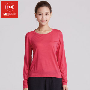 这款地球科学家女长袖T恤是春秋款,采用含美利奴羊毛的混纺面料制成,衣服摸起来的手感非常柔软完全不会不扎人,贴肤穿完全没有问题,还有速干透气抗异味的功效,比尼龙、聚酯的功能更好、档次更高、亲肤性也更佳,缺点就是不那么耐折腾。