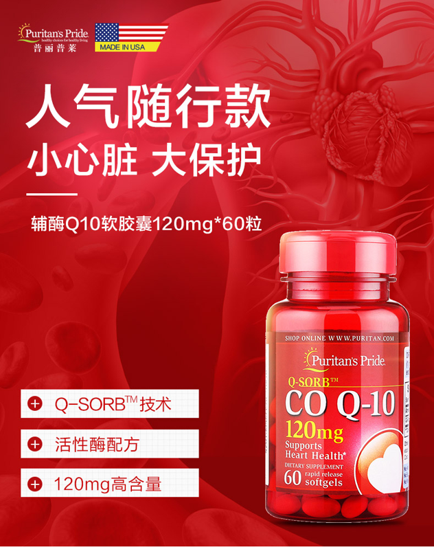 2018年获心脑血管健康奖产品,规格:120mg*60粒*2瓶,含量120mg/粒(人体较宜吸收标准含量),采用最先进的Q-Sorb技术,超低温提取,保证了酶的活性,大幅度提升人体吸收率。每日1-3粒随餐服用,孕期妇女食用前请咨询医生。