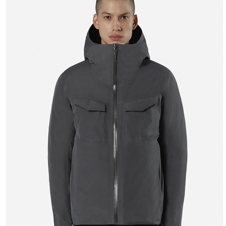外层面料上,使用防风防雪耐磨压胶防绒面料,经过防水处理,阻止雨水渗入,能保持面料长期干爽、洁净。羽绒采用先车出羽绒隔舱后充绒的方式,缩绒针细针眼搭配粗线的防钻绒工艺。