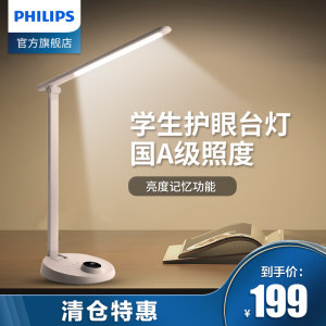 天猫飞利浦照明官方旗舰店309元,下单立减110元,可领100元优惠券,实付99元到手,这款飞利浦led护眼台灯,折叠式结构,造型上比较简约,用铝合金材质制成,质感强颜值高,可180度旋转灯头,可作为宿舍的书桌灯或者床头灯使用。