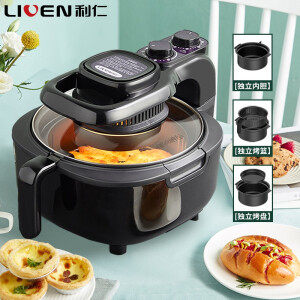 利仁(LIVEN)这款型号为KZ-J5000B的空气炸锅,内筒容量为5升,加热功率1100W,最高加热温度可达210℃,搭配循环热风,可食材自身被逼出的多余油脂达到油炸效果,有效降脂去油,同时锁住食材水分和营养;炸蓝侧壁采用立体导风槽设计,锅底凸型热风回流全面,食材均衡受热,不烤焦夹生,确保酥脆可口;透明玻璃上盖,可随时关注烹饪情况,定时/温度独立按钮90℃-210℃随心控。