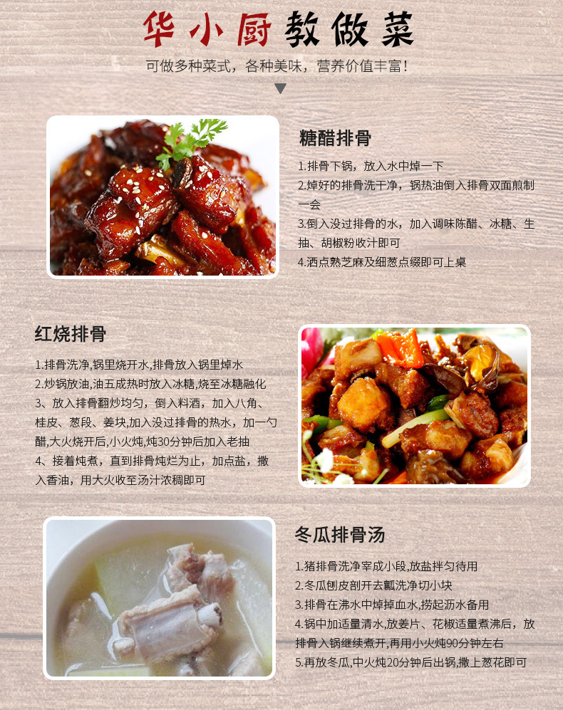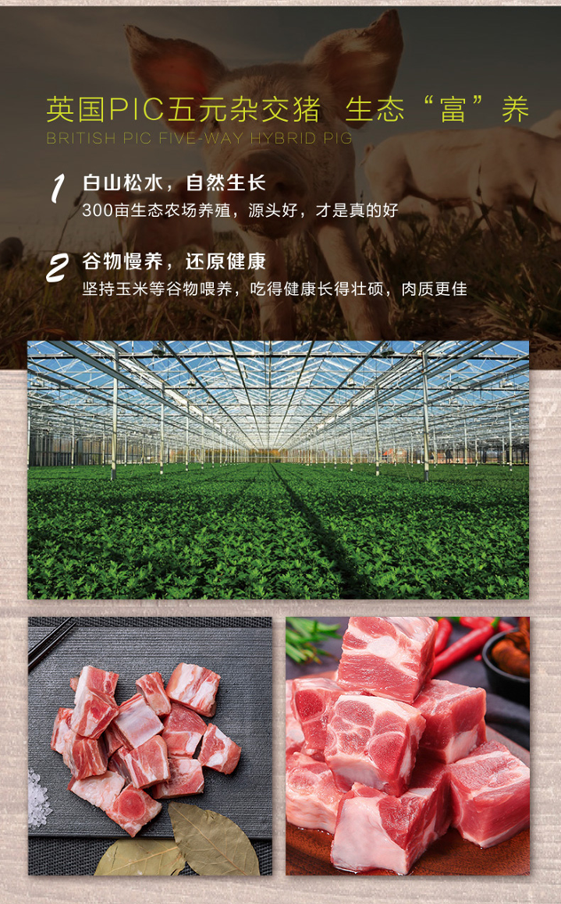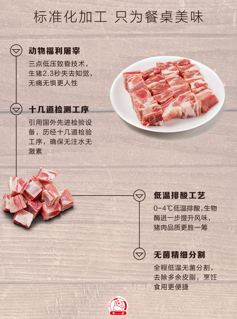 华正这款肋排,源自英国PIC五元杂交猪,自有养殖基谷慢养210天,不用激素,猪肉肉质鲜嫩,标准化加工,精选两侧中段肋骨,骨径均匀细致,内含软骨、骨胶原、瘦肉滑嫩不柴,红烧、糖醋排骨首选食材,经过低温排酸工艺,无菌分割,正规质检,食品安全可追溯,品质安全可靠。