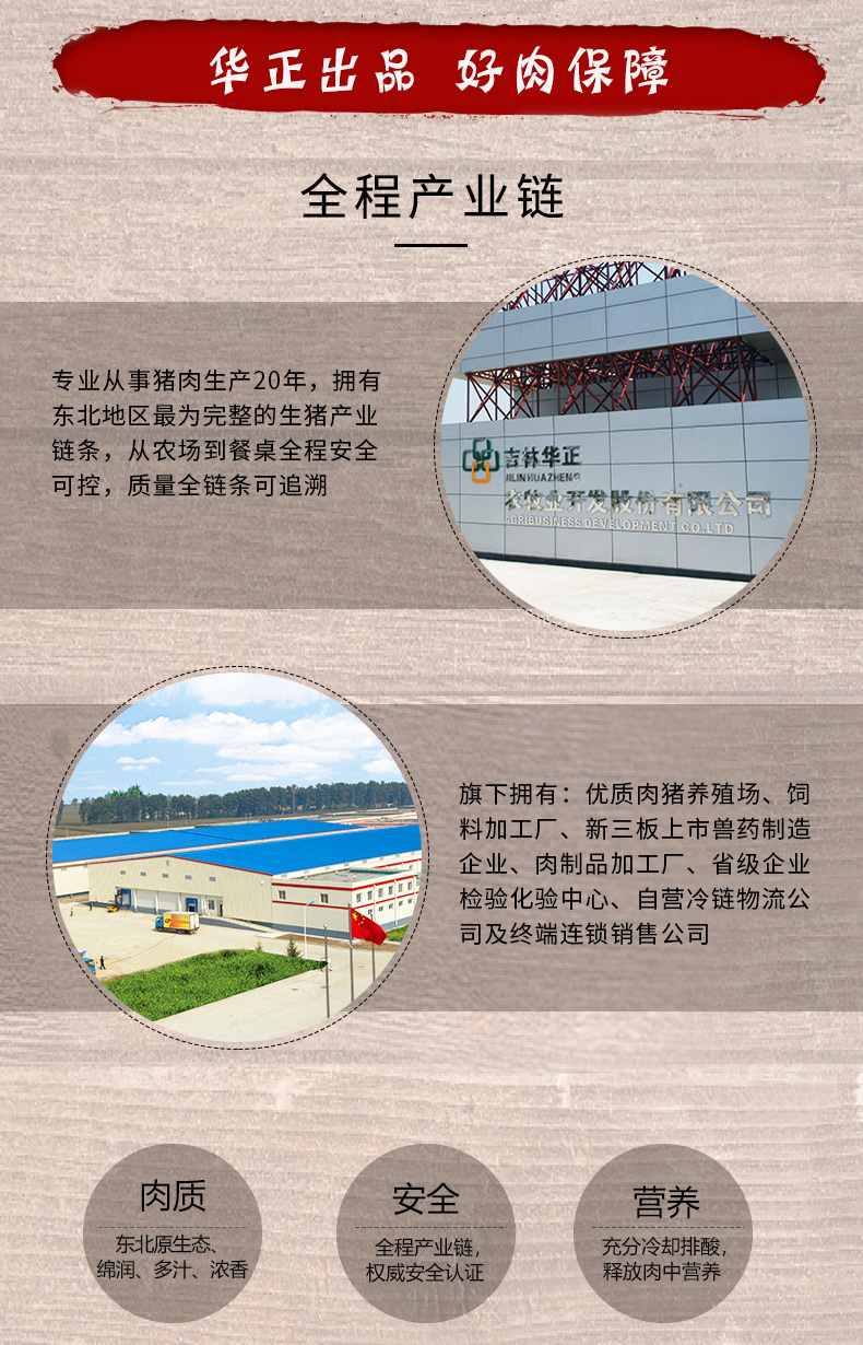 吉林华正农牧业开发股份有限公司,注册资本是1.6亿元,是种猪繁育、商品猪养殖、饲料生产、屠宰加工、肉类销售、养殖研究,带户经营为一体的从生猪产业化开发的股份有限公司。拥有东北地区唯一最完整的生猪产业全程产业链,同时也是东北地区规模最大的屠宰加工企业。