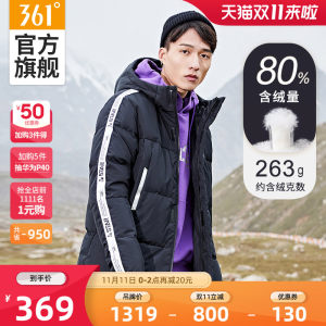 这款361度男连帽羽绒服,是2020秋冬新款,采用100%高密度涤纶面料,紧实严密,防风防雨。内里填充80%的鸭绒,其中M码充绒210g,属于加厚款,能抗零下10度的天气。