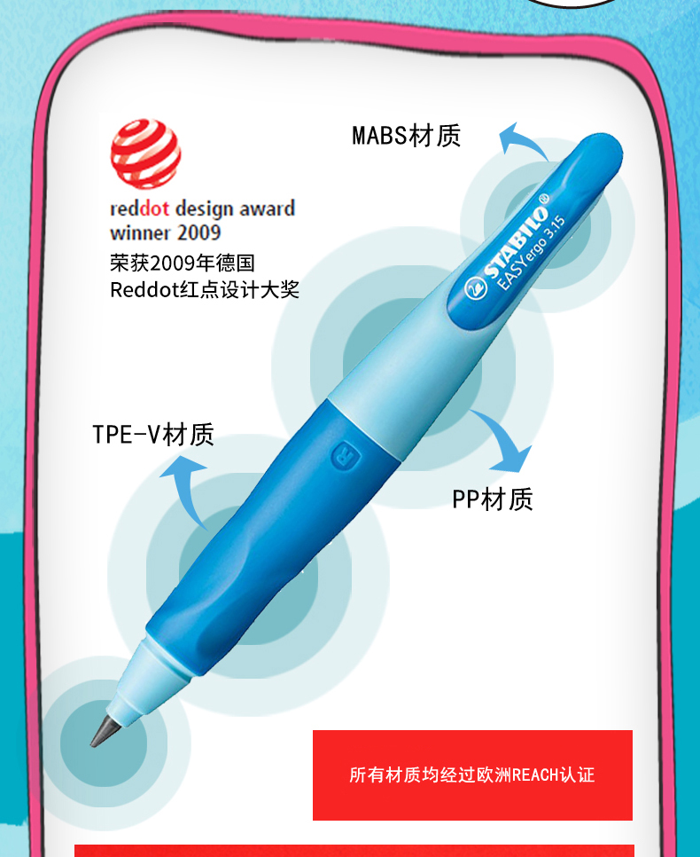 =49元 到手价,送铅芯+橡皮+卷笔刀。思笔乐儿童矫正握姿自动铅笔,荣获了2009年 德国Reddot红点设计大奖,所有材质通过了欧洲REACH认证。