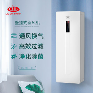 此款壁挂式新风机,净化系统为五层塔式高效净化,最大风量为110m³/h,适合卧室使用,5层塔式深层过滤净化,有效排出室内原有的污染空气,除甲醛味异味,降低二氧化碳浓度,形成室内微正压,阻止脏空气进入,每小时最少换1.8次空气,睡眠模式声音低至16.8分贝,静音无声。