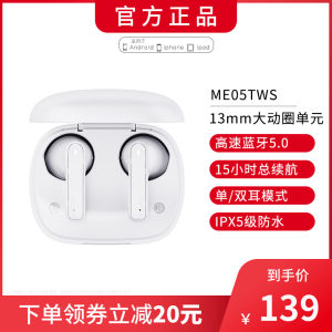 这款网易云音乐 ME05 无线蓝牙耳机,使用蓝牙5.0芯片,连接快速、稳定。使用13mm动圈单元+高分子复合振膜的组合,音质纯净无杂音、低音清晰有力。