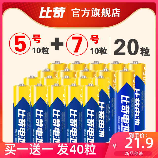 天猫比苛旗舰店64.9元,可领5元优惠券,实付14.9元到手,可选40粒7号或20粒5号+20粒7号。升级版大容量,电压稳定,经久耐用,无汞环保,安全不漏液,经济实用,遥控/玩具/无线鼠标等,都用的上的5号/7号电池!3年保质期,家用必备。