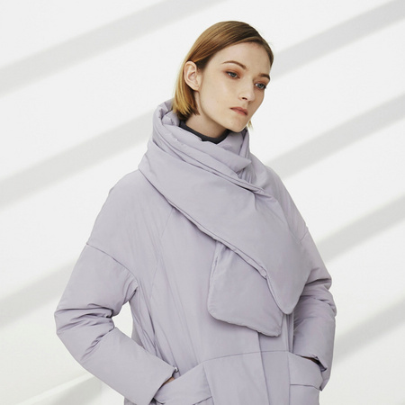 面料是97%棉+3%氨纶弹性纤维,摸起来手感比较硬挺,有良好的挺阔感,还具有防水功能。内里使用了保暖效果好的中棉填充,保暖御寒。在款式上,高领设计、双门襟、带袖扣,防护效果更好。