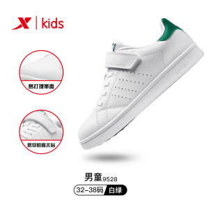这款特步儿童休闲板鞋是2020年秋季新款,经典小白鞋造型,在款式上类似阿迪的Stan Smith,贝壳头+尾标的组合,很帅气有没有。
