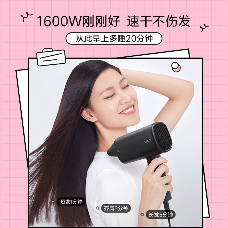 这款吹风机有小米生态链旗下企业生产,外观秉承了一贯简洁大方的设计语言,拥有双倍负离子护发、专利负离子通道,以及日本进口温度控制器等多项先进功能,全方位呵护头发。
