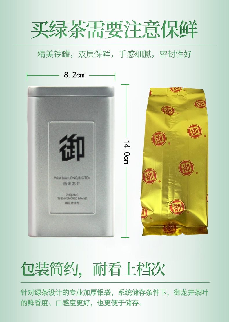 这款御牌明前西湖龙井,产自国家地理认证的一级核心产区杭州梅家坞,在清明节前头茬采制的茶叶,受虫害侵扰少,芽叶细嫩,色翠香幽,经炒制后的干茶,扁平光滑,仍见锋毫,色泽黄中带绿;茶汤清澈明亮,口感鲜爽回甘,叶底为幼嫩成朵,冷闻仍有余香,是茶中佳品。规格:50g。