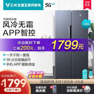 这款云米 BCD-436WMD对开门冰箱,风冷无霜,容量为冷冻室210L、冷藏室273L,共483升,二级能耗标准,耗电量1.05Kwh/24h。