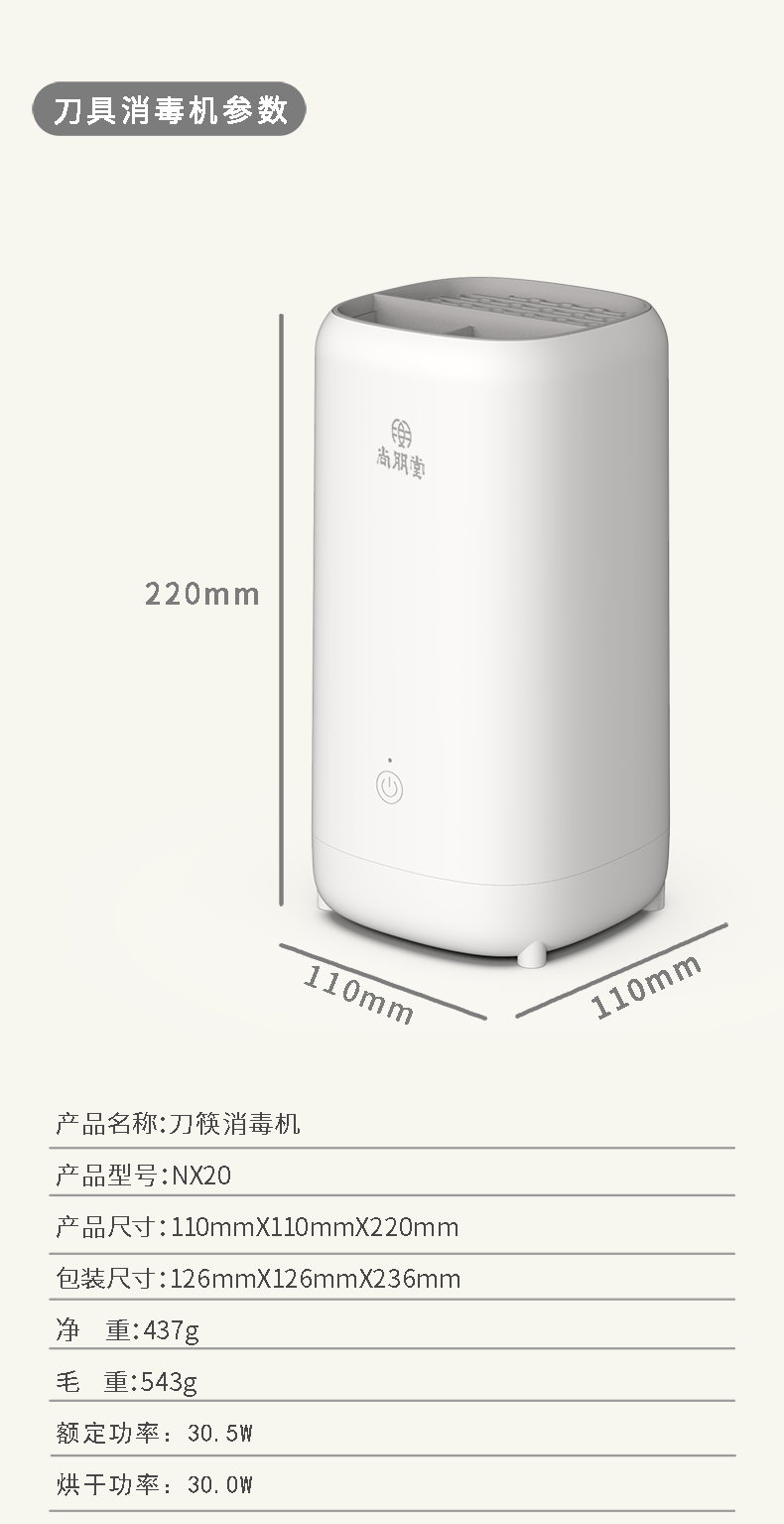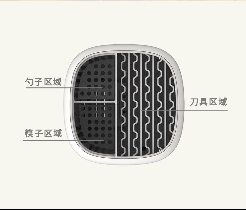 这款消毒刀筷架,弹性波浪刀架,适配各种大小厨具,另有单独筷勺区域,满足厨房厨具收纳。烘干款内置PTC加热,能够将内部温度循环到最高50°C。搭配热风循环系统,即可快速烘干餐具上的水渍,让餐具时刻保持干爽,不易发霉滋生细菌。保障入口的饮食卫生,呵护家人健康。