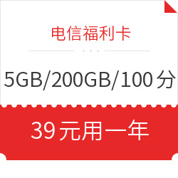 天猫移宝旗舰店目前上线一张中国电信福利卡,套餐月租19元,内含5GB通用流量+200GB定向流量+100分钟通话咨询客服下单上传照片随便拍(有疑问可咨询店铺客服),激活首月免费体验,收货联系客服在指定链接充值50元送50元(充值50元登记后可返还,无需自费),50立即到账,次月起系统每月返5元*10个月,店铺5-12个月赠送15元/月,相当于不超套餐情况下39元可用一年、无需再额外付费。