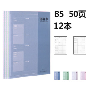 deli 得力 FB550-01 B5加厚错题本,一本有50页,共有12本,其封面采用雅莲纹设计,水性哑光油。在使用过程中可以有效的保护本子,经久耐用,手感舒适;拥有丰富内页,分为左右两边:左边记录题目来源、掌握程度、原因分析、考点知识点,右边分为原题错解、正解;书写便利,吸墨均匀,内页为250g白卡纸;有4种图案,可随心选择,用自己喜爱的本子记录生活每一天,快乐其实就是每一个微小的生活愿望达成。