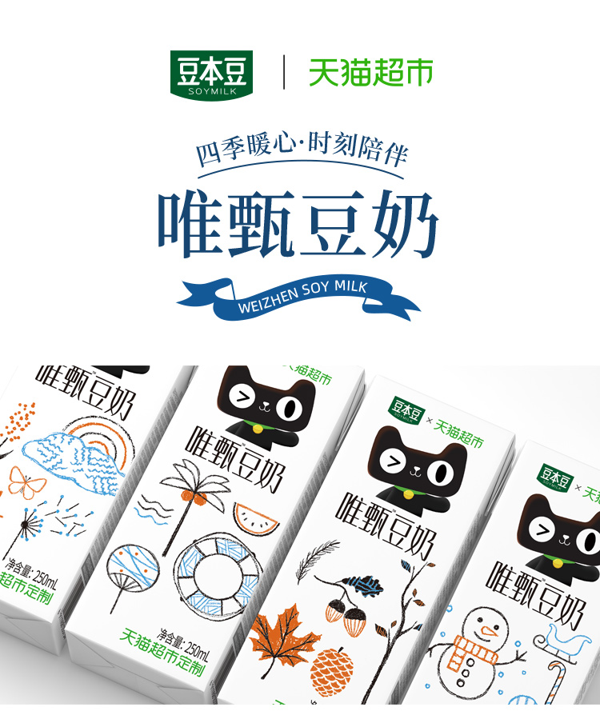 这款豆本豆唯甄豆奶是天猫超市联合的定制款,严选非转基因大豆味原料,再添加水和白砂糖,除此之外再无其他,不添加食用香精和防腐剂,还原醇香本味,每100ml含植物蛋白2.5g,无菌灌装。