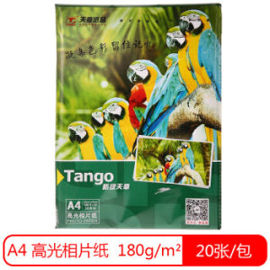 TANGO 天章 新绿天章 A4高光面相片纸 180g/㎡ 20张/包,四大优势留住美好瞬间。高清呈现保留精彩瞬间,支持4880/5760DP输出;良好色彩表现能力,图片清晰、明亮;耐水性强,瞬间吸墨,即打即干,不易褪色;独特涂层配方,配合良好,涂层工艺,照片光泽高;新绿天章相纸选用全木浆纸基,安全环保;可支持打印风景照、生活照、人物照、证件照,色彩分明,良好色彩感能力;即行即打,快速吸墨;耐光性强,可长期保存;吸墨力强,达到速干的效果;高挺度走纸流畅,畅享品质生活,适用于各种喷墨打印机。
