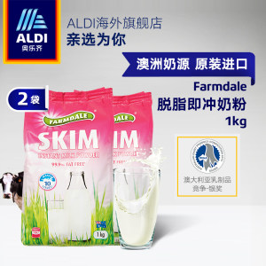 规格:2斤*2袋,一袋能冲40杯普通包装250ml的牛奶,2袋能喝很久了。这款产品的商标是FarmDale,99.9%脱脂,即冲即溶。是专为ALDI超市供货的乳制品品牌,性价比很高。这款脱脂牛奶获得了澳大利亚乳制品竞争银奖,金奖是同款的全脂乳粉,口碑产品。40~60℃水即可冲开,制作简单方便。