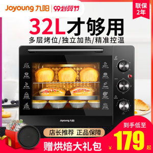 九阳,大品牌,32L容量可烤全鸡,可做10寸披萨、蛋糕等,大小适中,可上下管分层控温,35-220℃多档温度可调,还可定时,精准控温,防爆玻璃面板,可视化更方便,烤箱配有烤盘、烤网、屑盘、取盘夹等配件。