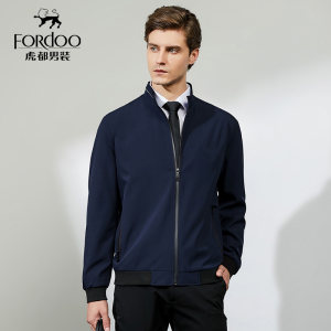 精选涤纶材质,版型挺括,且不易起球褶皱;表面有光泽,视觉档次也高。立体裁剪工艺,经典小立领+拉链开衫设计,挺拔有型。门襟处使用品牌Logo定制款纽扣和拉链,这些都是高档服饰的配置,细节精致到位。