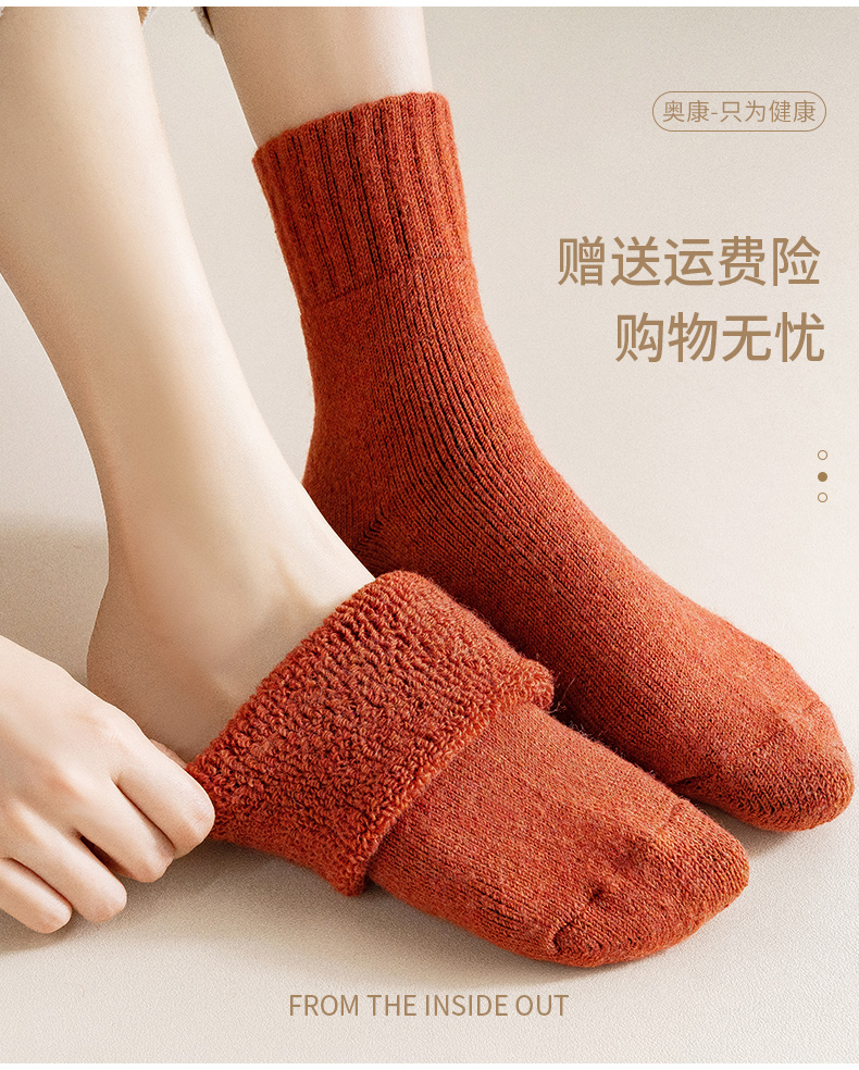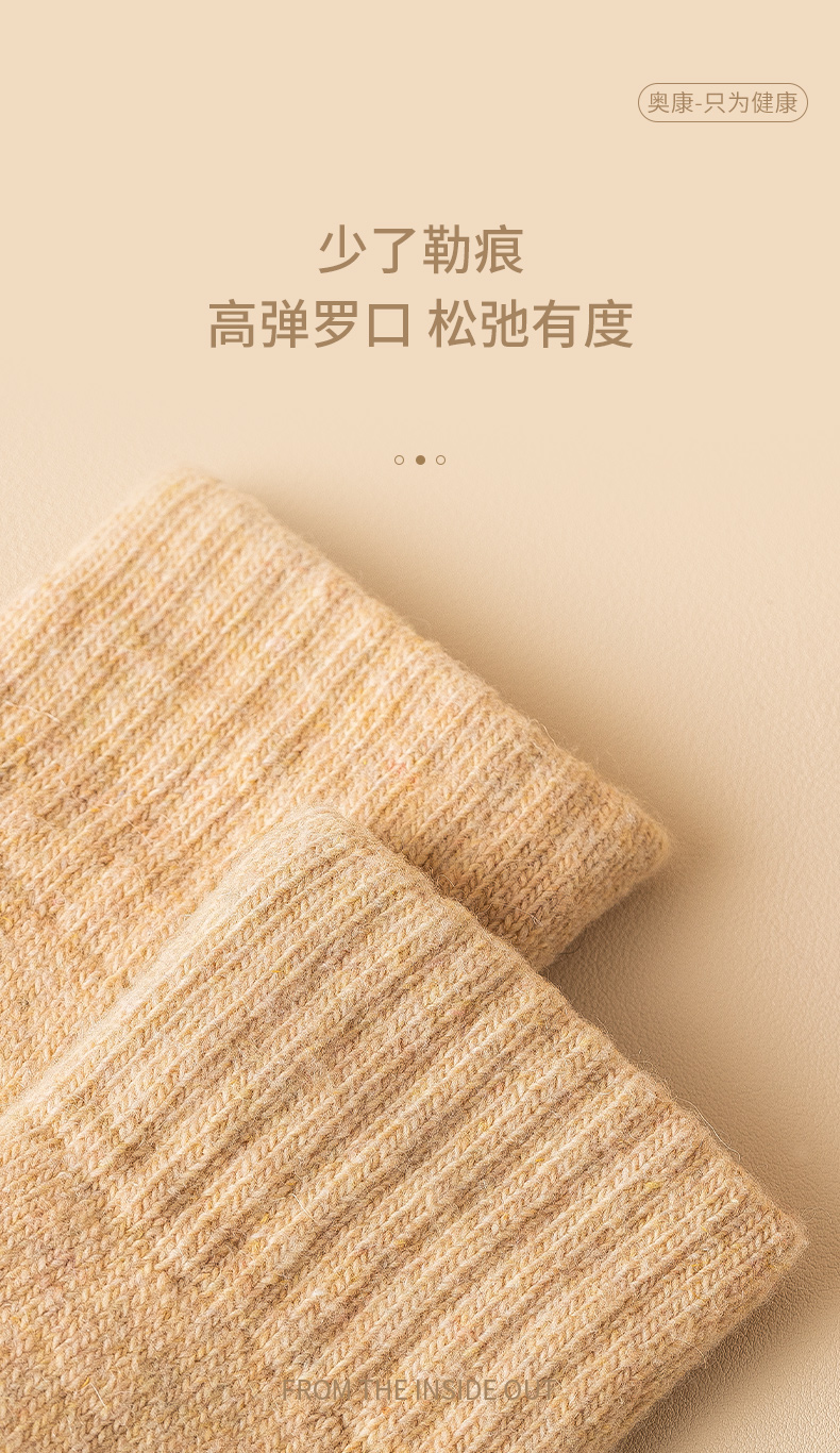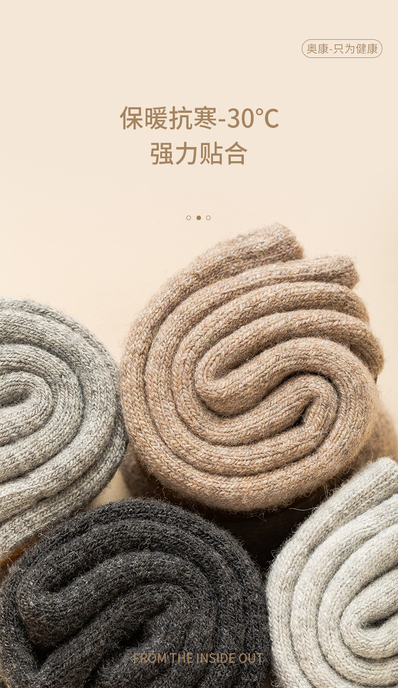 甄选美利奴羊毛,羊毛含量6.3%,还添加了聚酯62%、腈纶25%、粘纤3.3%、锦纶3%,多达五种纤维科学配比,耐磨耐穿,比一般冬袜更不容易起球,弹力舒适,透气不闷脚;内里多倍柔软毛圈,锁住热量,保暖抗寒-30度,手工缝合袜口,无感贴合更舒适。