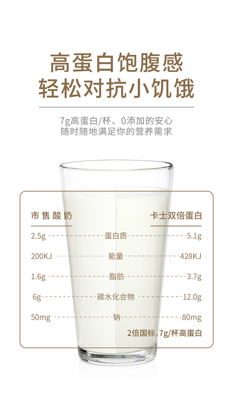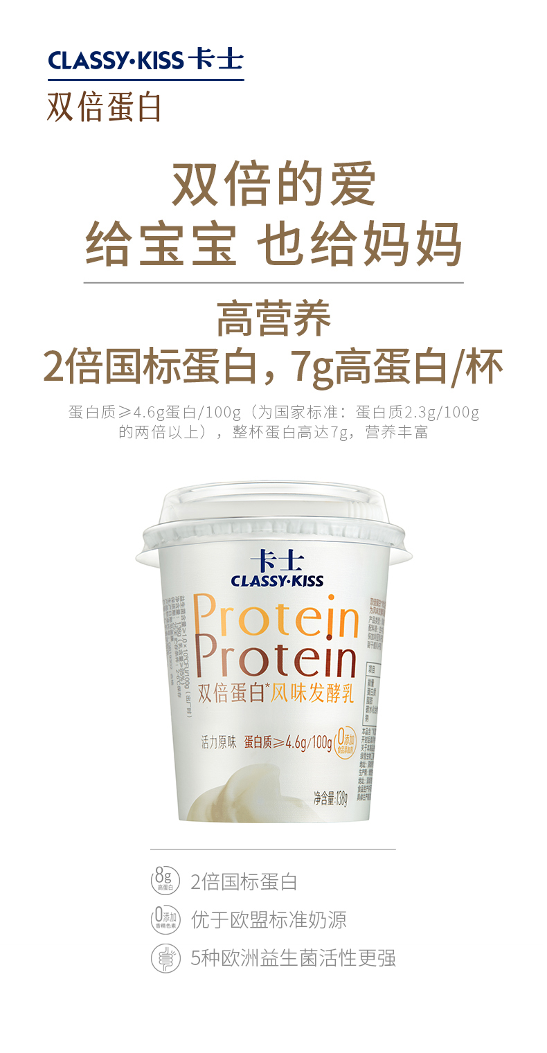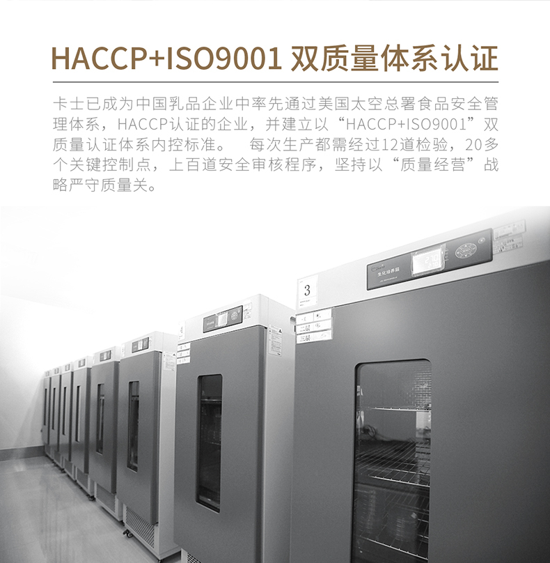 卡士酸奶,优于欧盟奶源标准,纯生牛乳发酵,无添加香精色素,拒绝乳粉添加,奶香四溢,具有HACCP+ISO9001双质量体系认证,实时冷链监控系统,确保产品良好状态和口感。