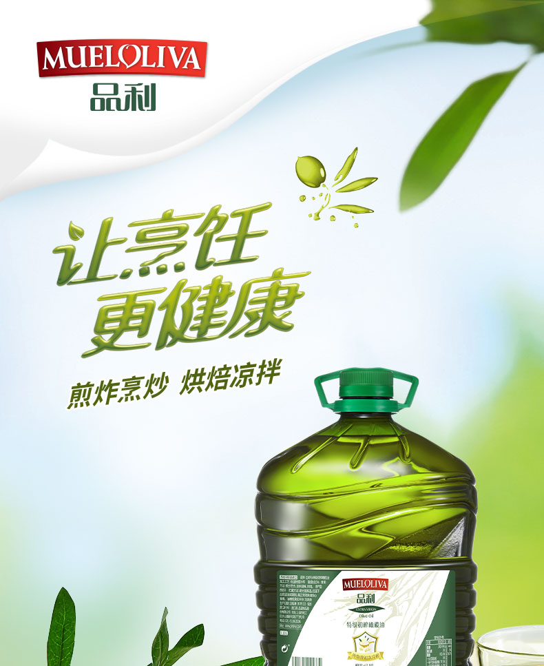 品利橄榄油采用地中海产区橄榄果为原料,采摘后24小时内冷榨而成,单不饱和脂肪酸含量79%。天然橄榄中的多配含量高达400ppm(毫克/千克),长期食用有利于人体健康。