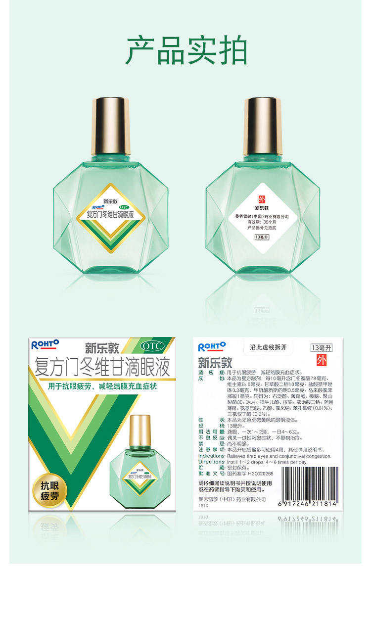 曼秀雷敦 新乐敦眼药水,清凉配方,缓解充血、减轻炎症,舒适抗疲劳。13ml小瓶装便于携带,非常适合用眼过度人群,平常刷手机时间长使用可缓解疲劳、游泳前后使用可预防感染。