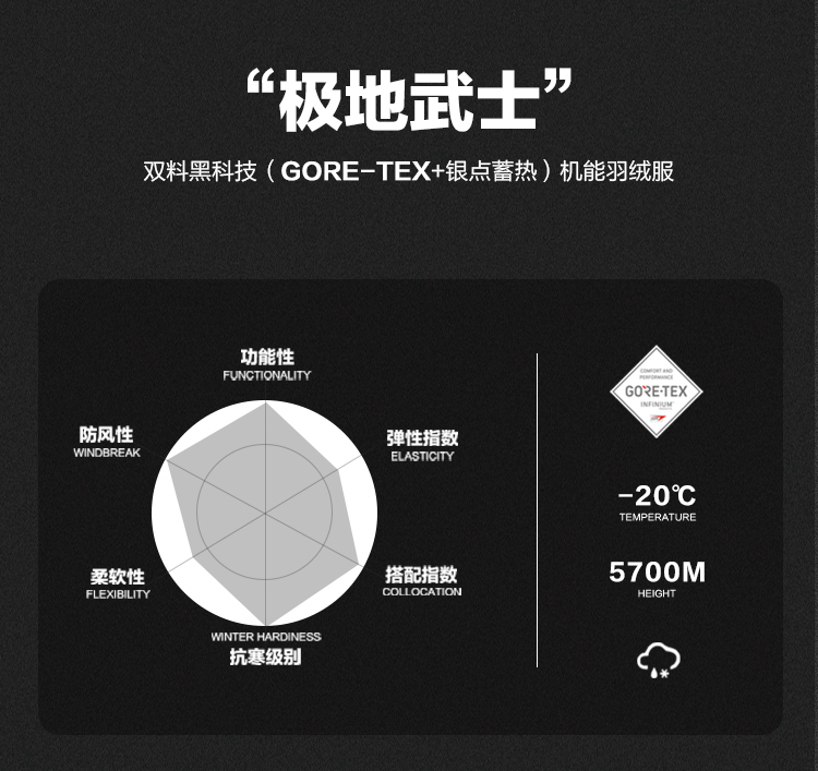 在功能面料领域,美国Gore公司的Gore-Tex和Windstopper是行业标杆,Gore-Tex防水,Windstoper防风。顶级旗舰款羽绒服,多使用Gore-Tex或Windstopper,优点都是保暖足够,防水防风功能强悍。