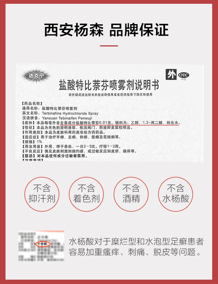 这款达克宁 盐酸特比萘芬喷剂,针对症状专门研制,主要成分盐酸特比萘芬,能深入杀菌专治脚气,液体制剂,特含酒精,喷涂后能快速渗透,规格是15ml。
