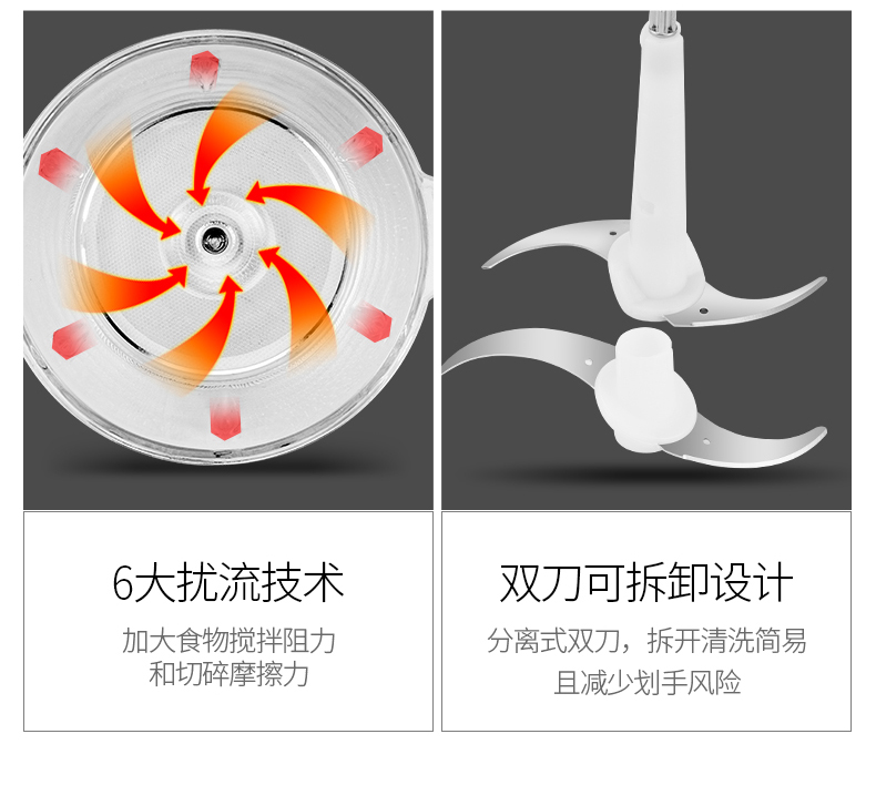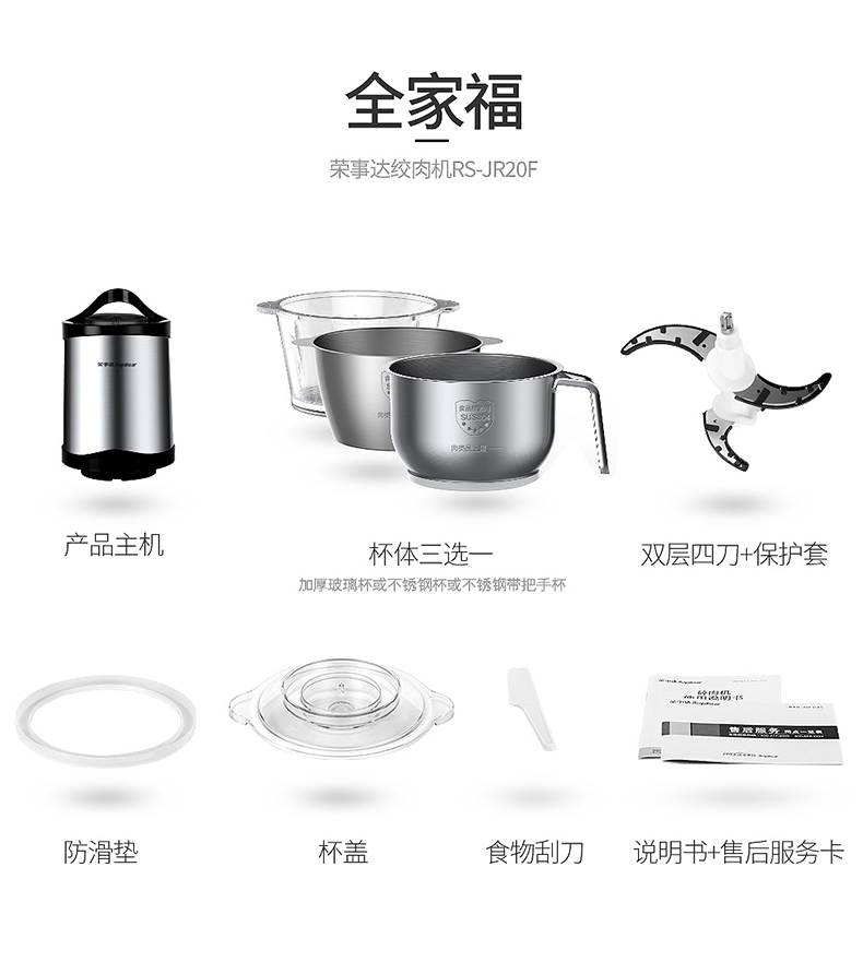 这款荣事达多功能电动绞肉机,可以用来搅碎肉类、酱料、辅食、蔬菜,采用双层四维刀锋,搅碎快速方便,拥有快满两个档位,松手后刀组立马停止运转,防止刀片一直运转。6秒绞肉碎菜,均匀细腻,解决烹饪难题,尤其吃水饺哈!