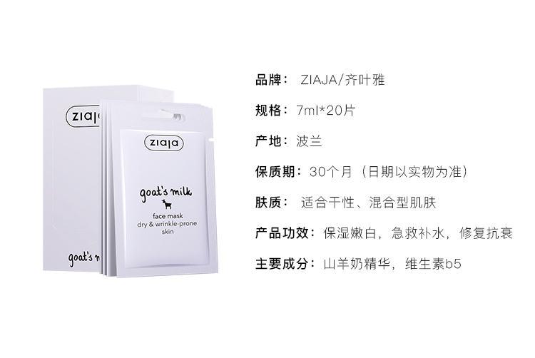 ziaja品牌的山羊奶面膜,是一款涂抹型乳霜状的面膜,甄选全球知名的黄金奶源—波兰山羊奶,蕴含着与肌肤PH最接近的山羊奶精华,比牛奶保湿更好,而且不易过敏,在保湿同时还带一点修复功效。