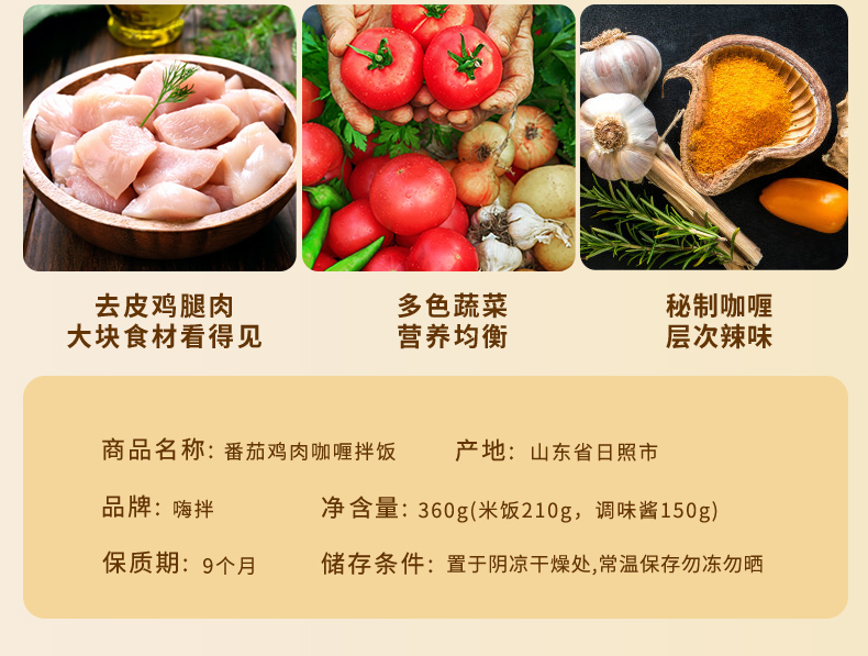 有三杯鸡、小盘鸡、奶油鸡肉咖喱、番茄鸡肉咖喱、韩式泡菜五花肉、香菇卤肉、黄焖鸡米、7种口味可选。