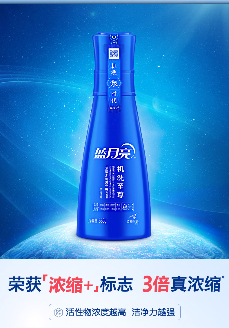 单件包含660g瓶装(清韵梅香)、500g瓶装(风清蓝白)、600g袋装*2(清韵梅香),超浓缩设计,同等体积下,机洗至尊活性浓度高达国家标准洗衣液3倍,一套耐用232天,相当于国标洗衣液22斤。
