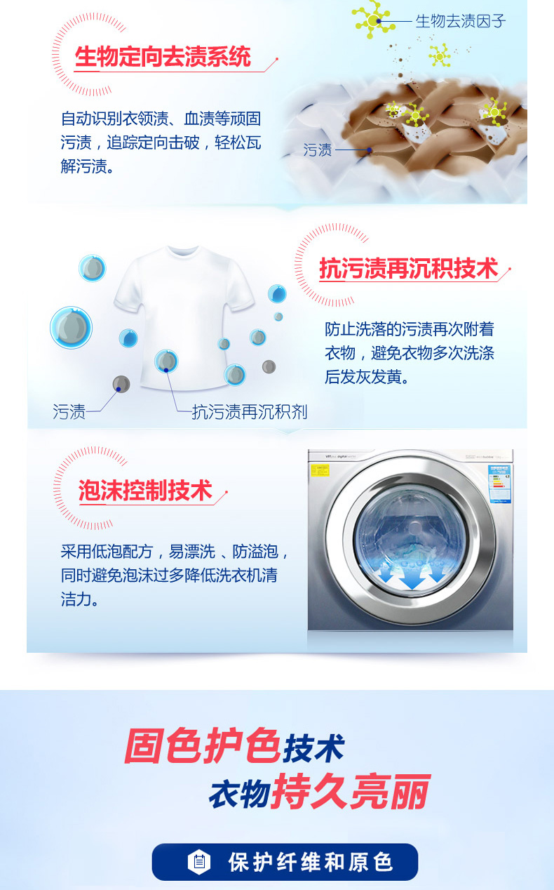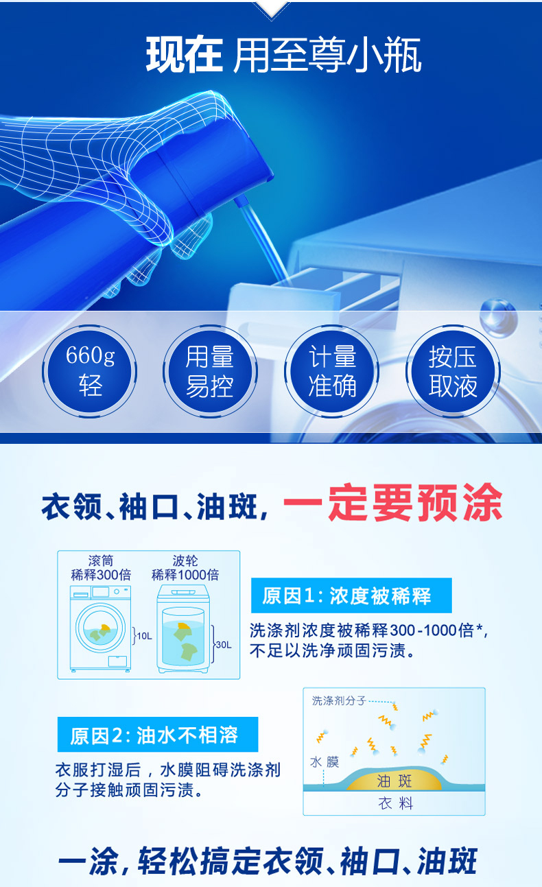 机洗至尊活性浓度高达47%,采用突破性低粘稳定技术,避免液体粘稠带来的难溶度、难泵出等问题。亲水性强,入水后急速扩散,入水即溶,100%全面起效,全面释放洁净能量;突破性高效洁净因子和活性物,深层去渍去污,防止再附着。