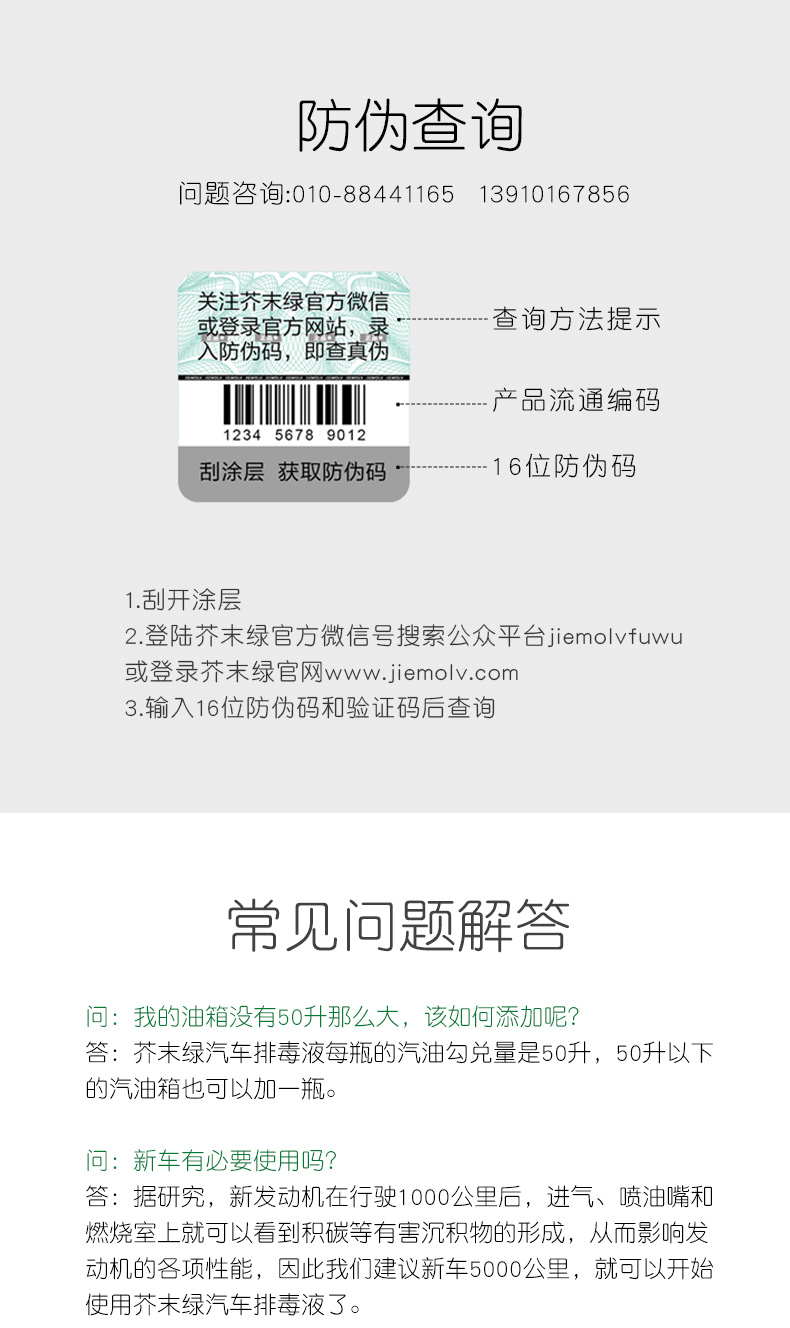 使用方法:每5000公里使用1套,1支芥末绿可以兑50升汽油。