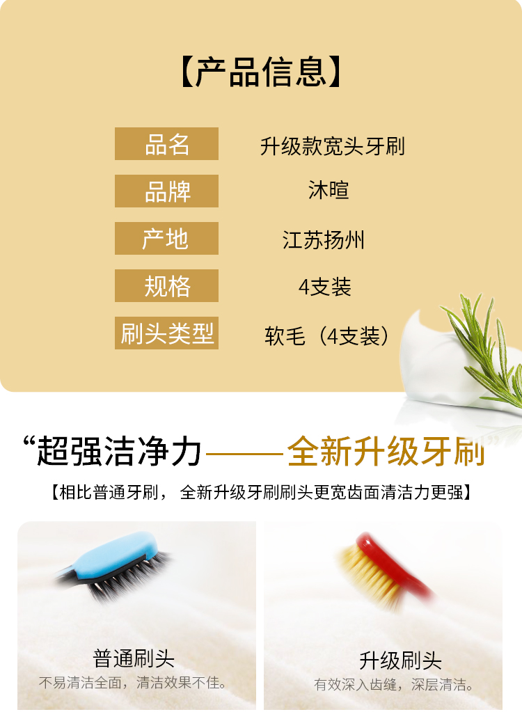 天猫沐暄旗舰店11.9元,可领2元优惠券,实付9.9元到手,全新65孔超宽刷头,超软黄金刷丝,双重混合平尖植毛。其中13孔硬毛,52孔软毛,软硬兼施,清洁更到位,减少对牙龈压力,边刷牙边按摩牙龈,亮白洁护三合一,刷牙从未如此享受,优质树脂握柄,耐冷耐热,握感舒适。