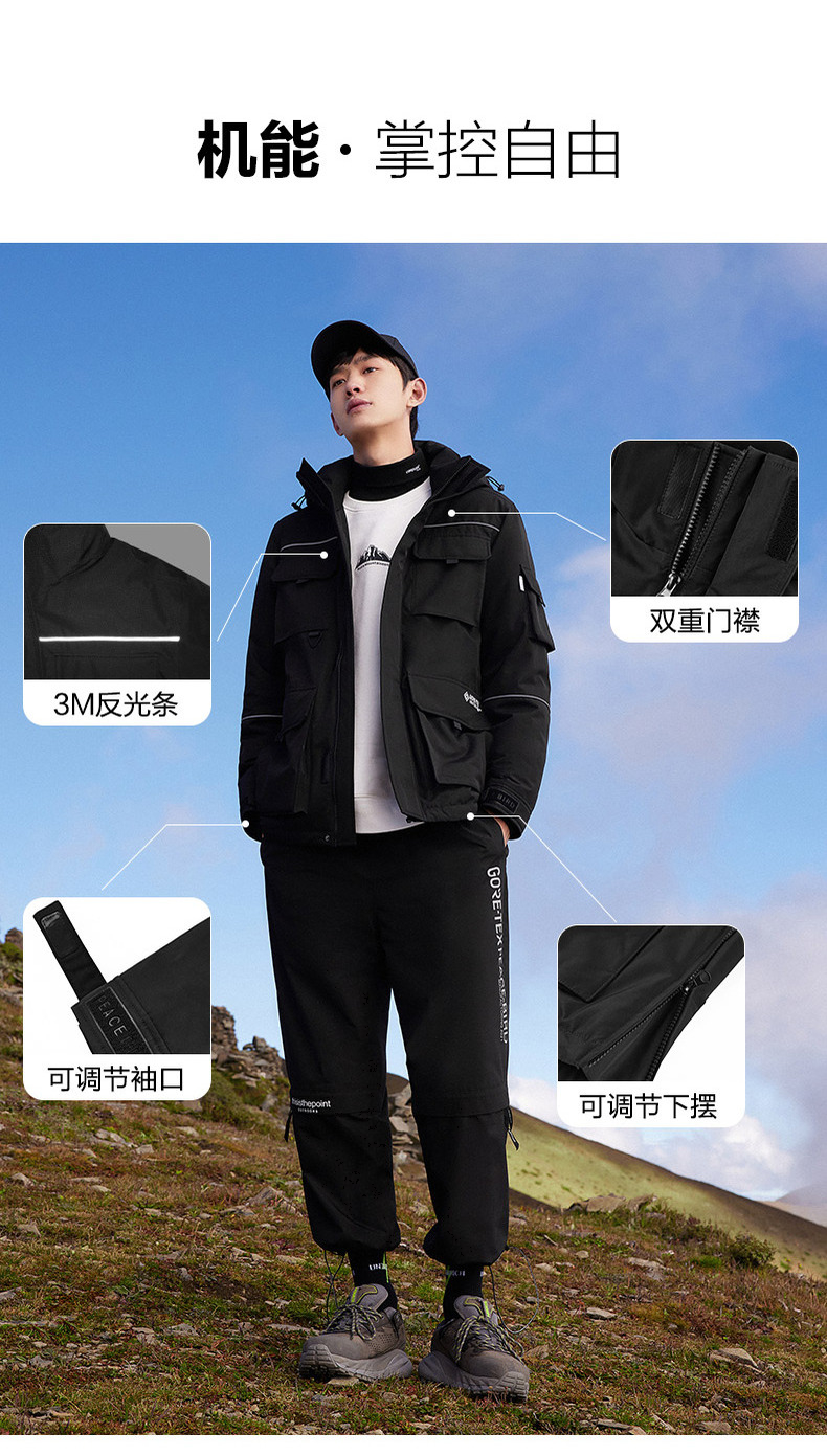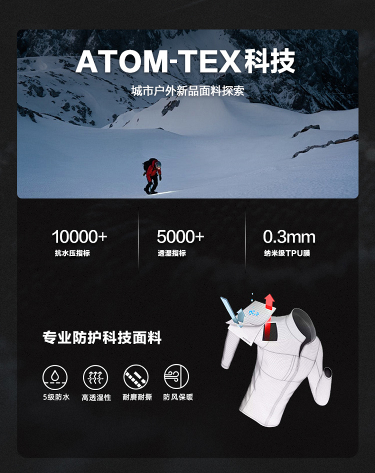 太平鸟今年推出的 新款 「极地武士」机能服,采用GORE-TEX+银点蓄热双料黑科技加持,兼具时尚设计与户外功能于一体,即可满足日常都市穿衣需求,也可满足冬季户外徒步、登山、滑雪功能防护需要。
