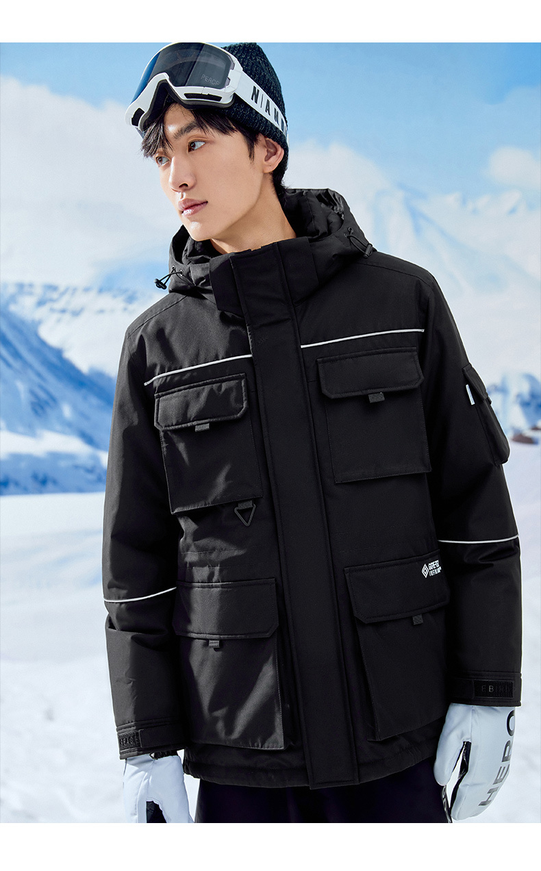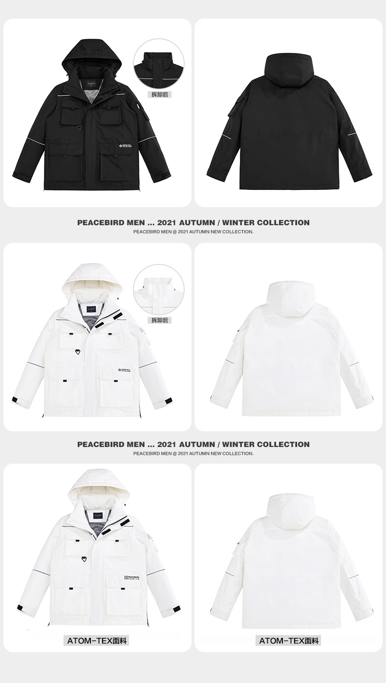 细节上:复古工装风穿着时尚帅气,一体防风连帽设计+双层门襟+防风袖口,全方位防风,确保户外出行保暖需求。下摆拉链可调节,提升户外运动舒适性,3M反光条装饰,为夜间出行增加安全保障。