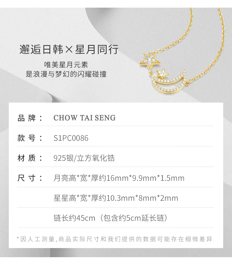 天猫周大生饰品旗舰店409元,下单立减20元,可领260元优惠券,实付129元到手,周大生S925银 星月同行锁骨链,浪漫星月交辉,璀璨锆石镶嵌点缀,光芒相互映衬,款式精致,修饰脖颈,可做生日礼物,送女友,送闺蜜,送自己,锁骨的不二之选!