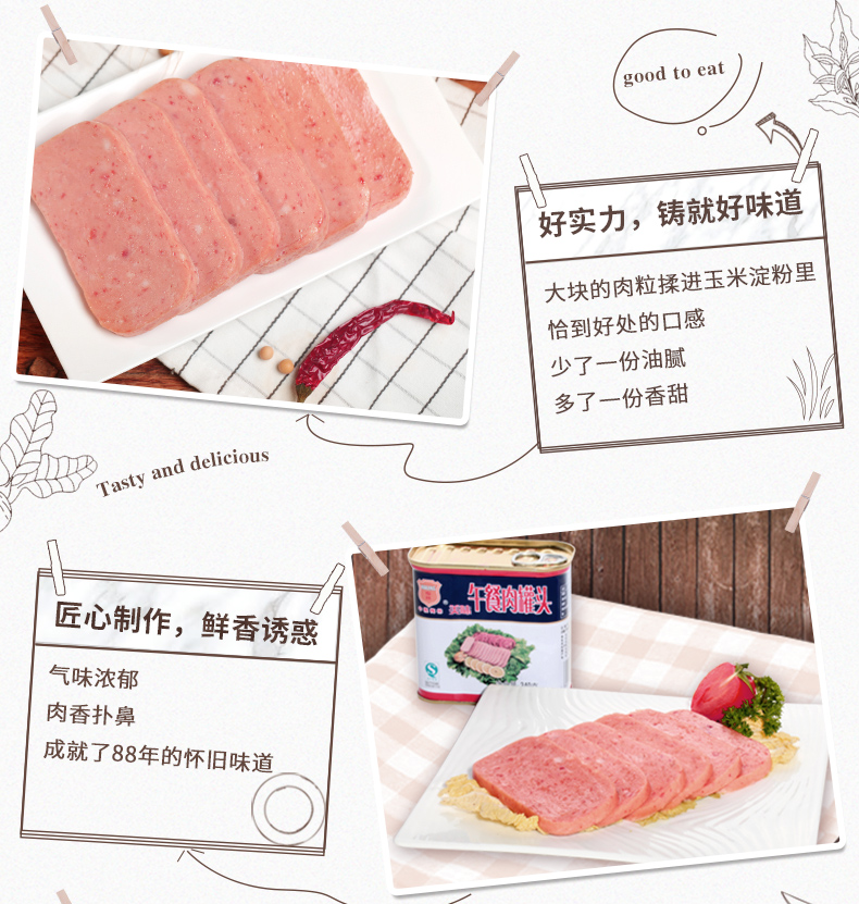天猫梅林旗舰店59.9元,可领15元优惠券,实付44.9元到手,这款是340g的大罐装 共3罐。国民老品牌,一代人口味的回忆!精选猪肉制作,肉质Q弹,鲜香味美,无菌封罐,无防腐剂,适合涮火锅、做三明治、炒菜等多样吃法。